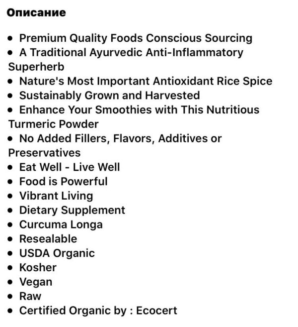 Изготовлено из корня органической куркумы