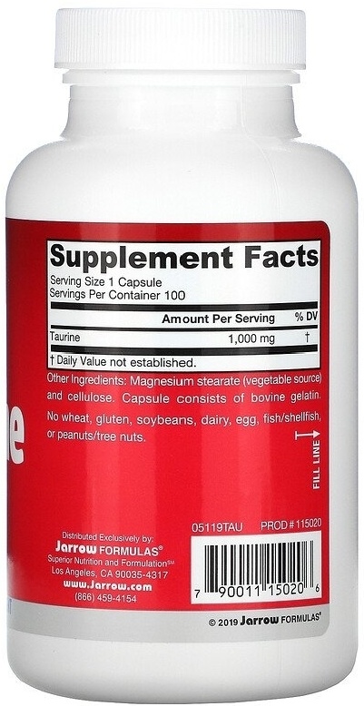 Jarrow Formulas, таурин, 1000 мг, 100 капсул
