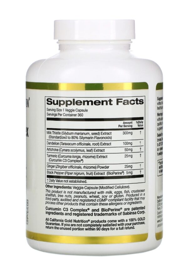 Силимариновый комплекс California Gold Nutrition — это уникальная формула, содержащая смесь расторопши, одуванчика, артишока и куркумы. Экстракт расторопши стандартизирован до 80% флавоноидов силимарина, экстракт одуванчика содержится в соотношении 4:1, а экстракт артишока — в соотношении 10:1. Имбирь и черный перец дополняют остальные активные ингредиенты, обеспечивая лучшее усвоение