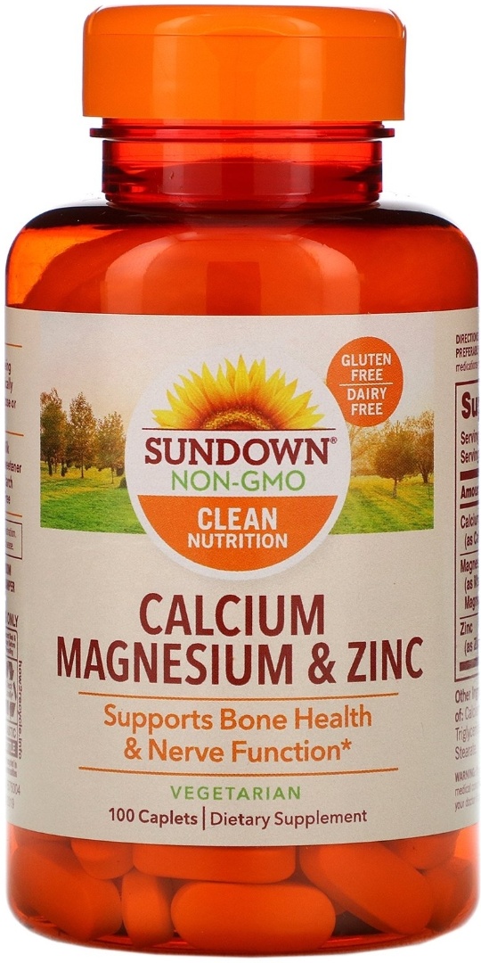Sundown Naturals, кальций, магний и цинк, 100 капсуловидных таблеток