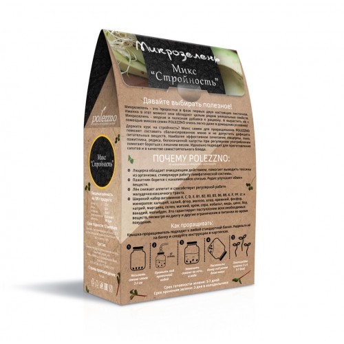 | Состав | Семена для проращивания: люцерна, белокочанная капуста, пажитник, редис, лён |